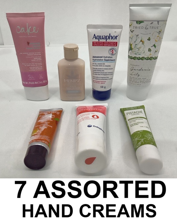 7 ASSORTED HAND CREAMS- ASSORTED BRANDS & SCENTS