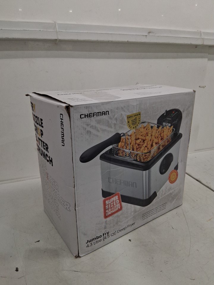 CHEFMAN JUMBO SIZE DEEP FRYER WITH TEMPERATURE CONTROL - 4.3L - STAINLESS STEEL/SILVER (MODEL: RJ07-45-SS-CA)
