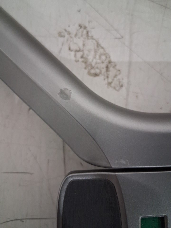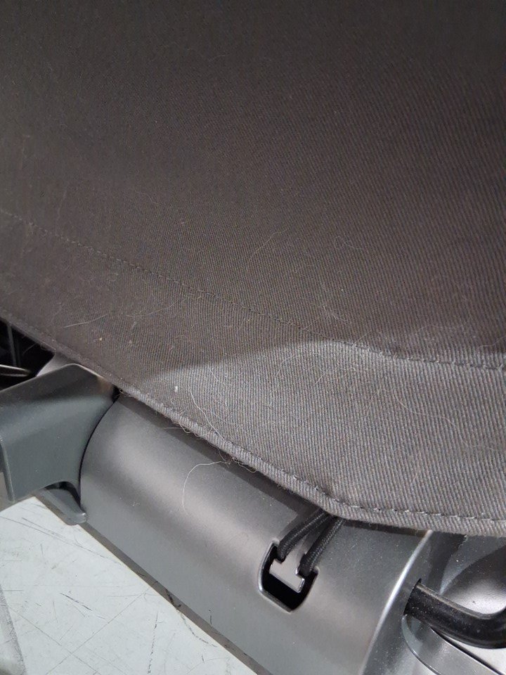 There are scuff/scratch marks on the poles at the bottom of the bouncer due to previous use, there is also a little bit of pet hair on the bottom of the bouncer.