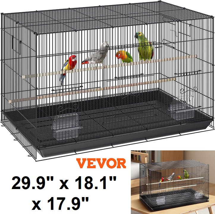 large bird cage with stick stands and tray - 29.9" x 18.1" x 17.9" - black (Model: 504CD)