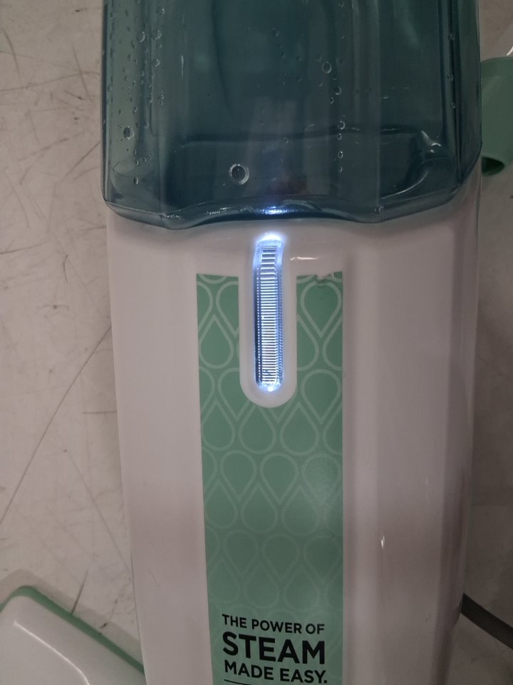 Tested for power. Please note the mop shows signs of previous use with dirt smudging on the pad and water in the reservoir, see photos.