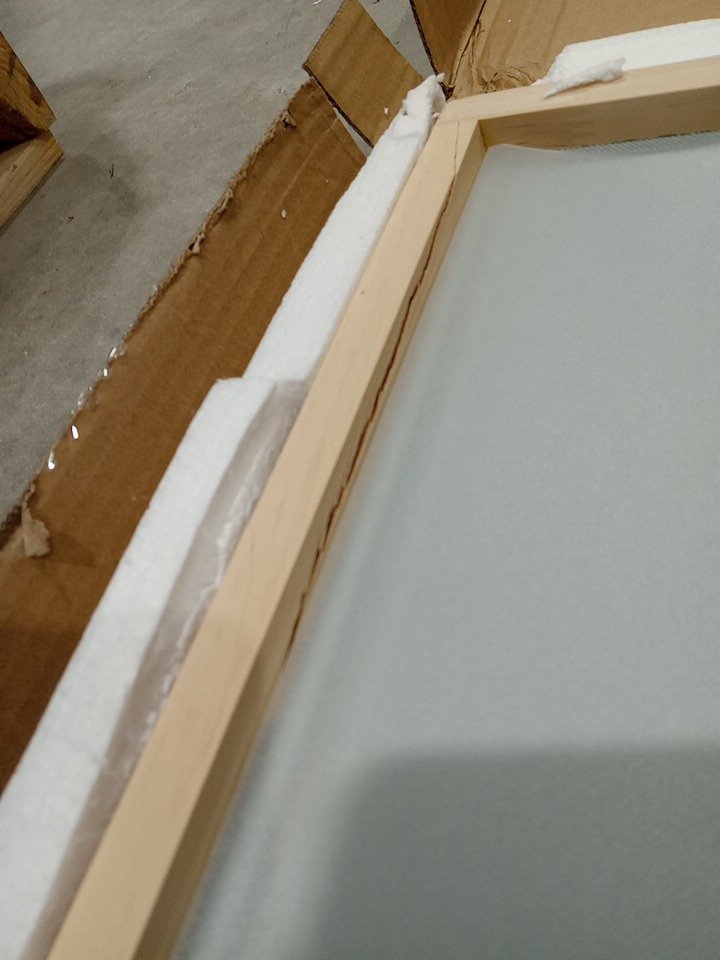 the wood frame is slightly cracked, this seems to be due to shipping and handling, see photos below.