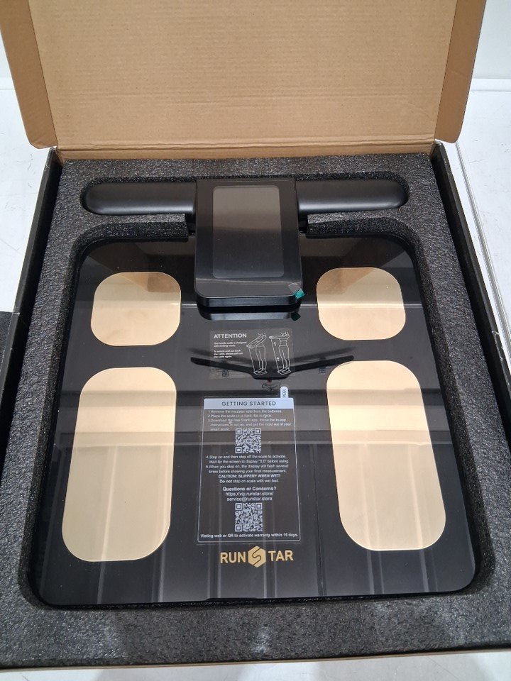 RunStar Scale for Body Weight and Fat Percentage, 8 Electrodes High Precision for BMI 28 Body Composition Measurement - app compatible - black/gold (model: fg2015ulb)