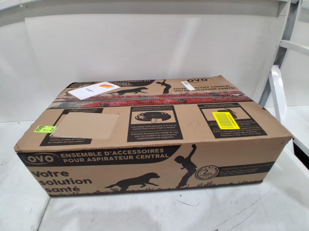 OVO CENTRAL VACUUM ATTACHMENT KIT WITH 15FT LOW-VOLTAGE HOSE - ON/OFF SWITCH AT THE HANDLE - GREY (model: accho-15lv-ext)