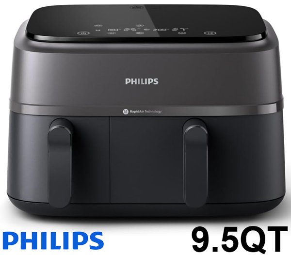 Philips 8-in-1 3000 Series Dual Basket Air Fryer - 9.5QT (3.2QT/6.3QT) - BLACK (MODEL: NA350/00)
