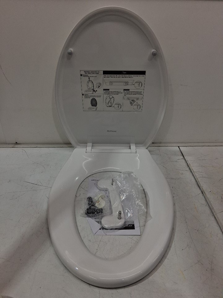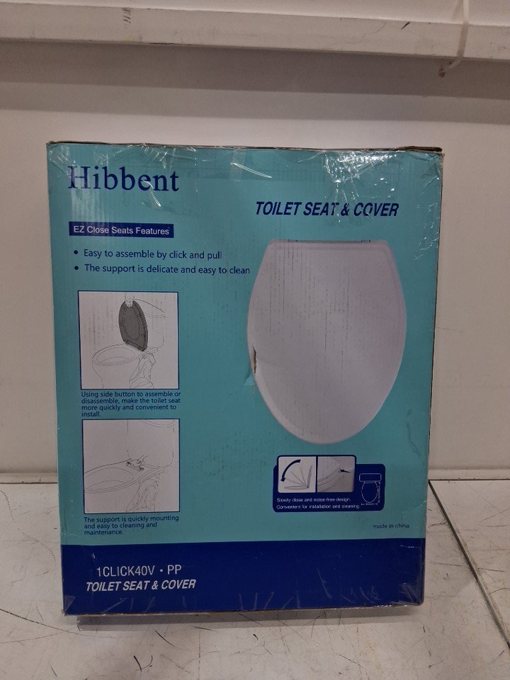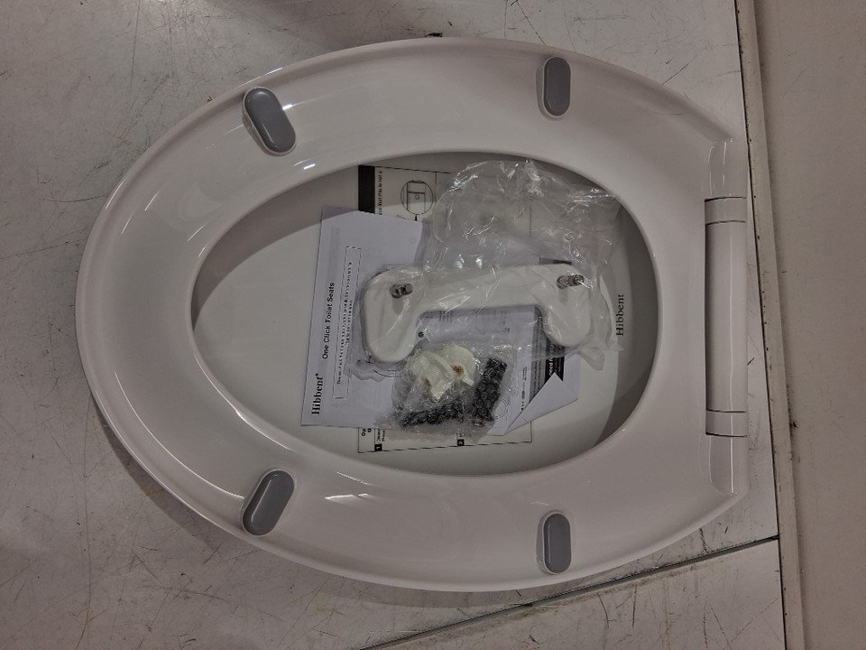 HIBBENT PREMIUM ONE CLICK ELONGATED TOILET SEAT WITH COVER - OVAL - EASY INSTALL AND QUICK RELEASE SEAT FOR EASY CLEAINING - SOFT CLOSE - 18.5" LENGTH - WHITE (MODEL: 1CLICK40V)