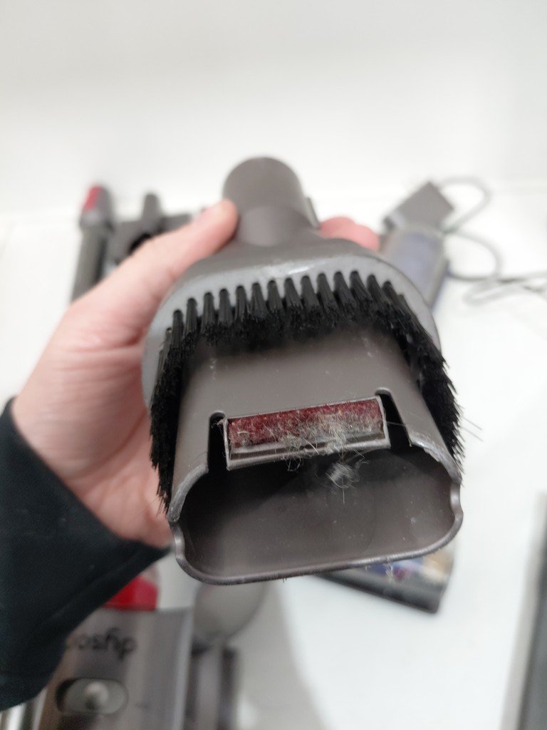 item is covered in dust/dirt/hairs from previous use. Item should be cleaned before use. Filter may need to be replaced (see photos) tested for power and function