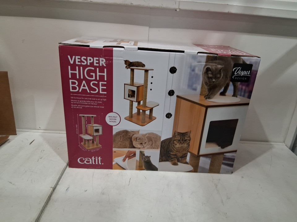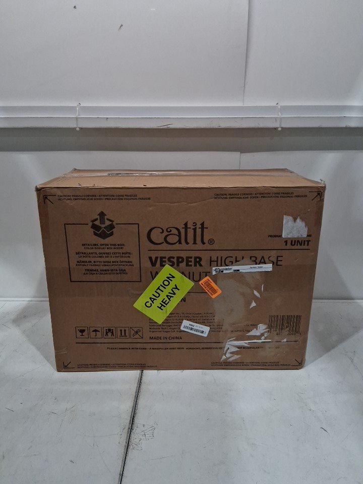 CATIT VESPER HIGH BASE SCRATCHING POST HIGH TOWER WITH BASE & CONDO - 22.1" x 22.1" x 47.8" - WALNUT - (MODEL: 52045)