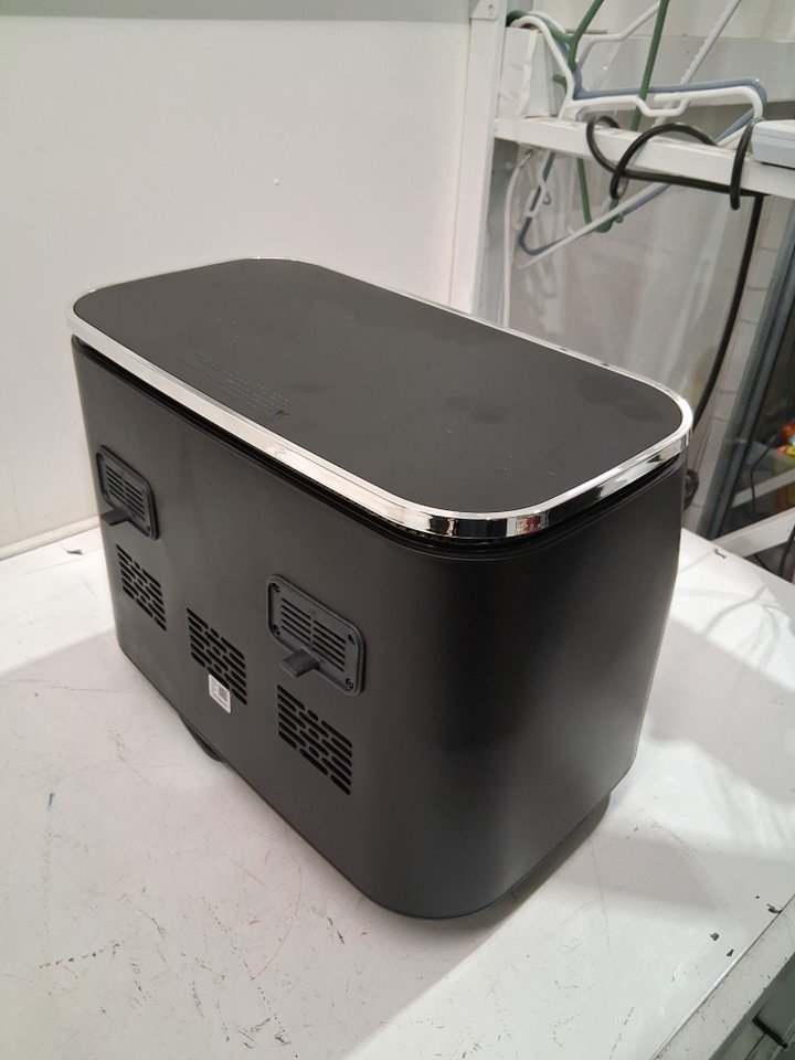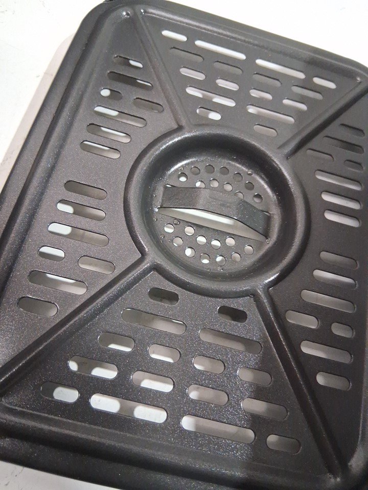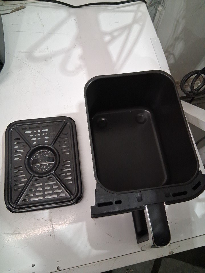 Oil tray's have an oil residue and there was some crumbs inside the fry basket. product was tested for power.