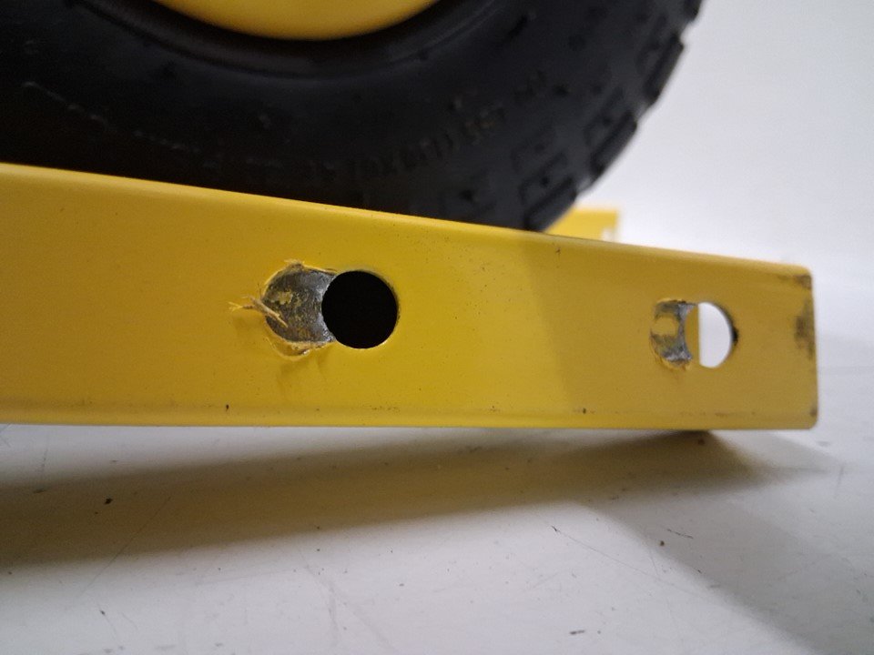 item has some scuffs/scratches on blade from prior use; light wear on some of the locking holes from assembly/use (see photo)