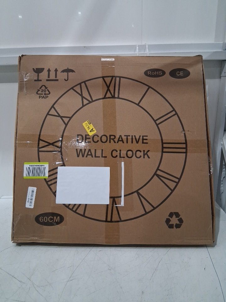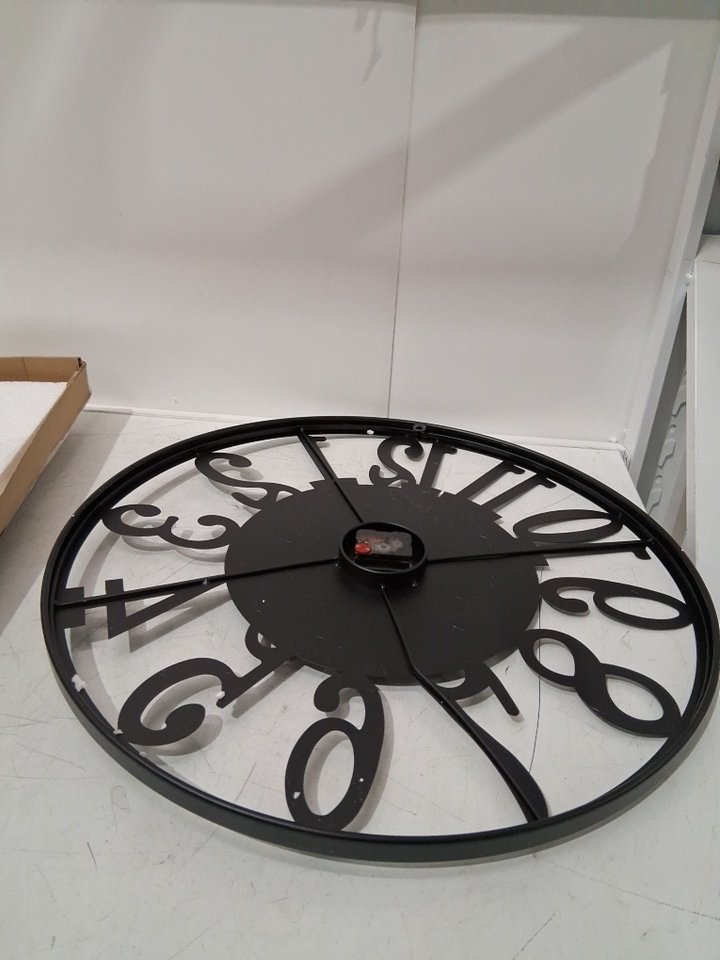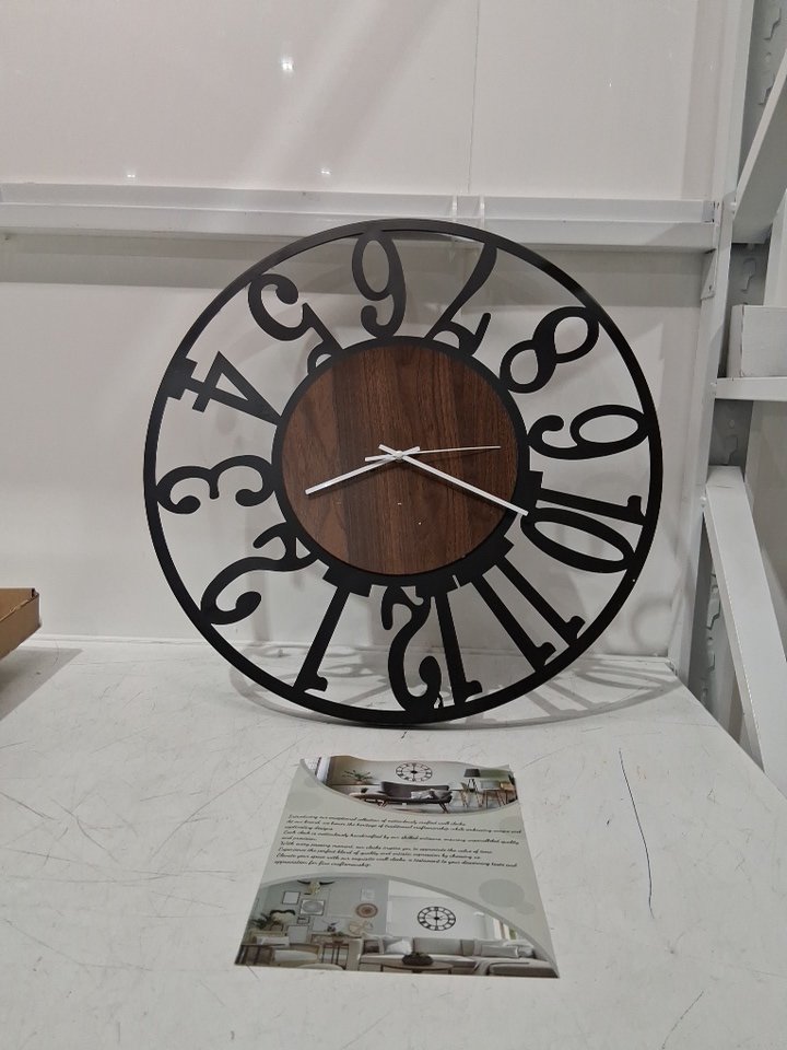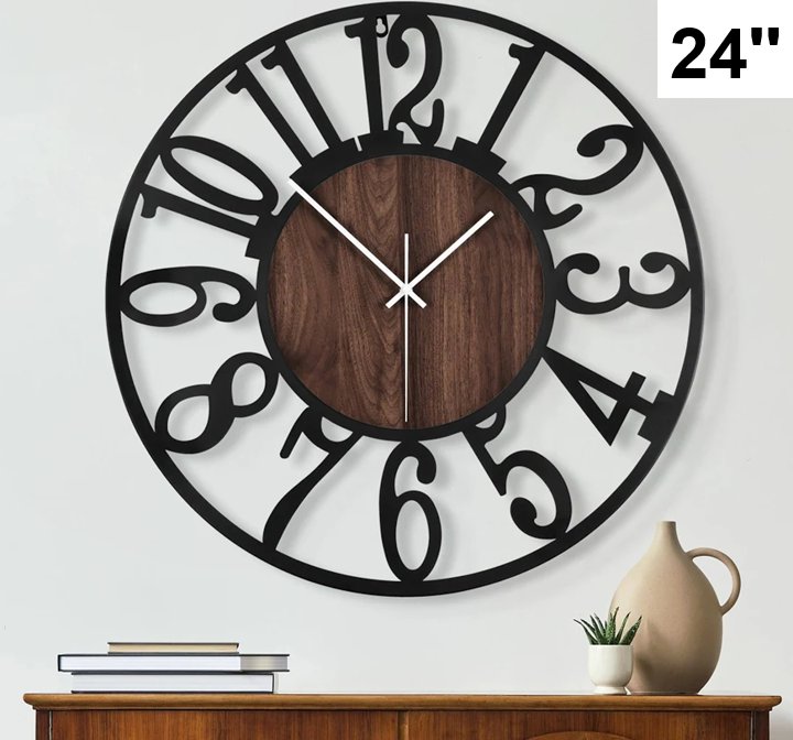 maxstar large Retro Style Metal Wood Nature round wall clock - 24" - black/brown