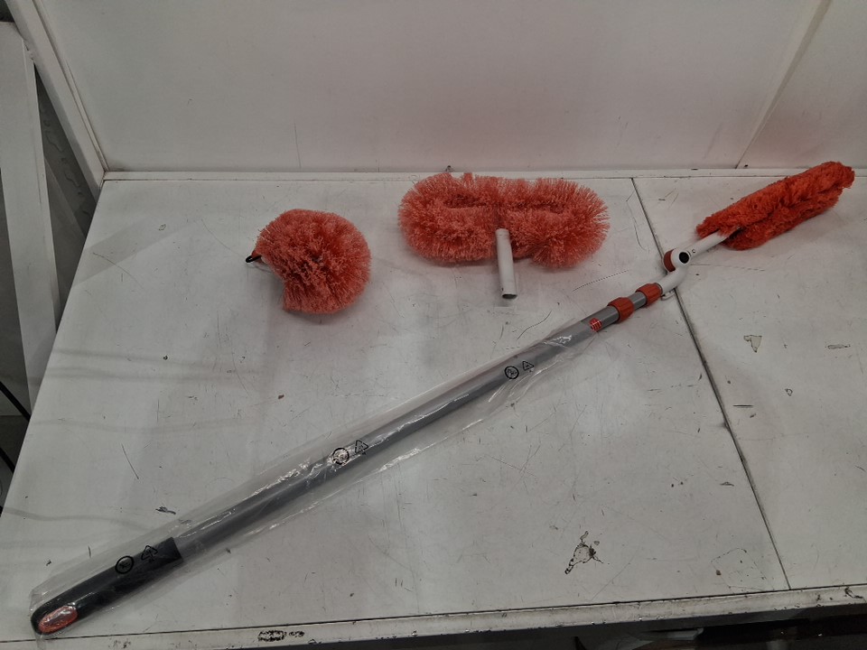 OXO Good Grips 3-in-1 Extendable Microfiber Long Reach Duster with 2 Interchangeable Heads - Extends to 8 FT - Silver/Orange (Model: