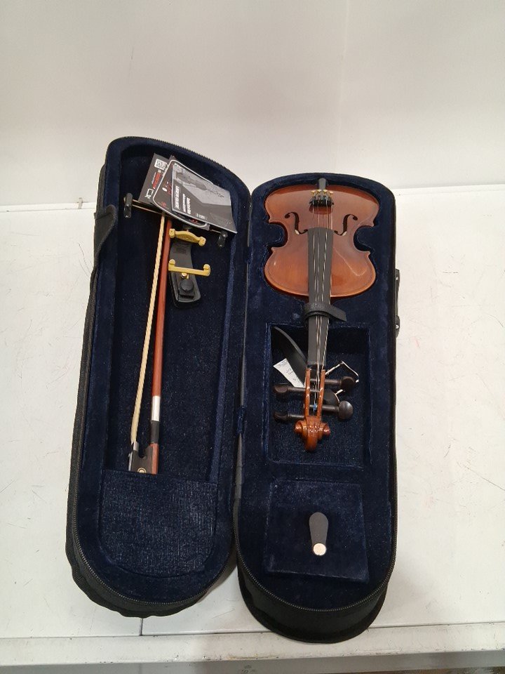 Violin needs to be re-strung. Is also missing bridge. Can be replaced. (see photos)