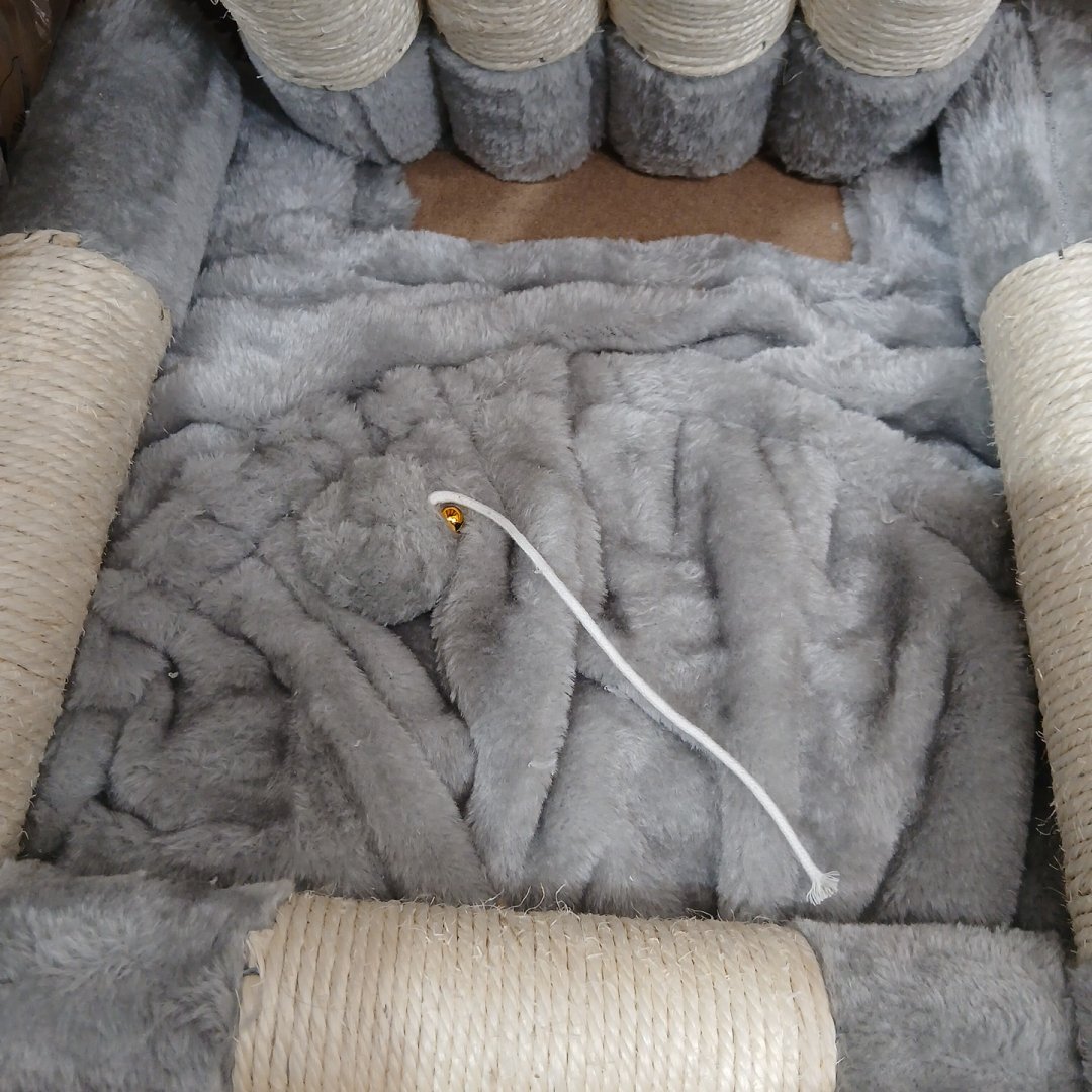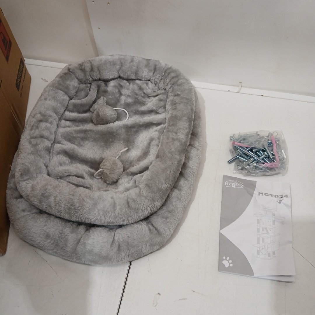 item has minor signs of previous installation, such as light amount of cat hair and opened hardware bag. Otherwise in good condition.