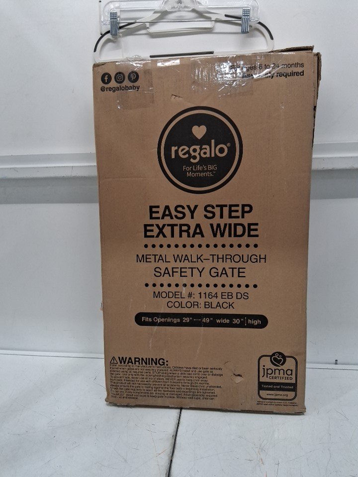 REGALO EASY STEP EXTRA WIDE METAL SAFETY GATE - 30" x 29" - 49" - BLACK (MODEL: 1164EBDS)