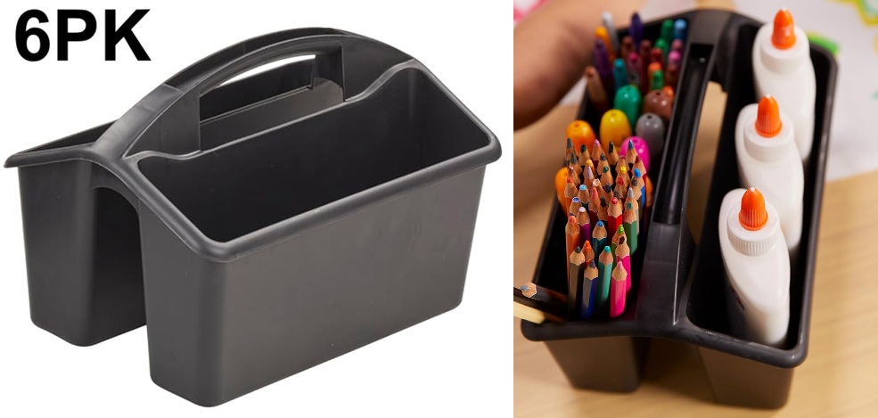 6PK ECR4Kids 6-Compartment Organizer Storage Caddy - 9" x 6.5" x 6" - Black (Model: ELR-16504-BK)