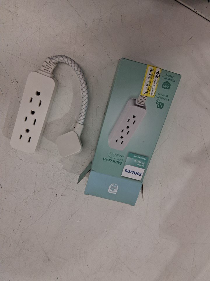 Philips Indoor Extension Cord with Surge Protection, 3-Outlet, Flat Plug, 245 Joules, ETL Listed, 1FT, White (MODEL:SPP8272WC/37)