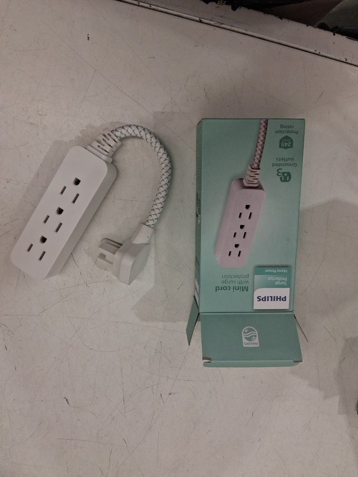 Philips Indoor Extension Cord with Surge Protection, 3-Outlet, Flat Plug, 245 Joules, ETL Listed, 1FT, White (MODEL:SPP8272WC/37)