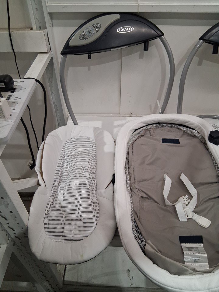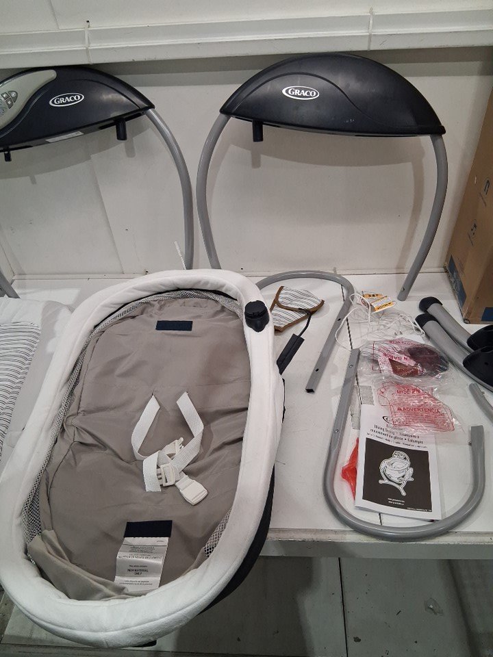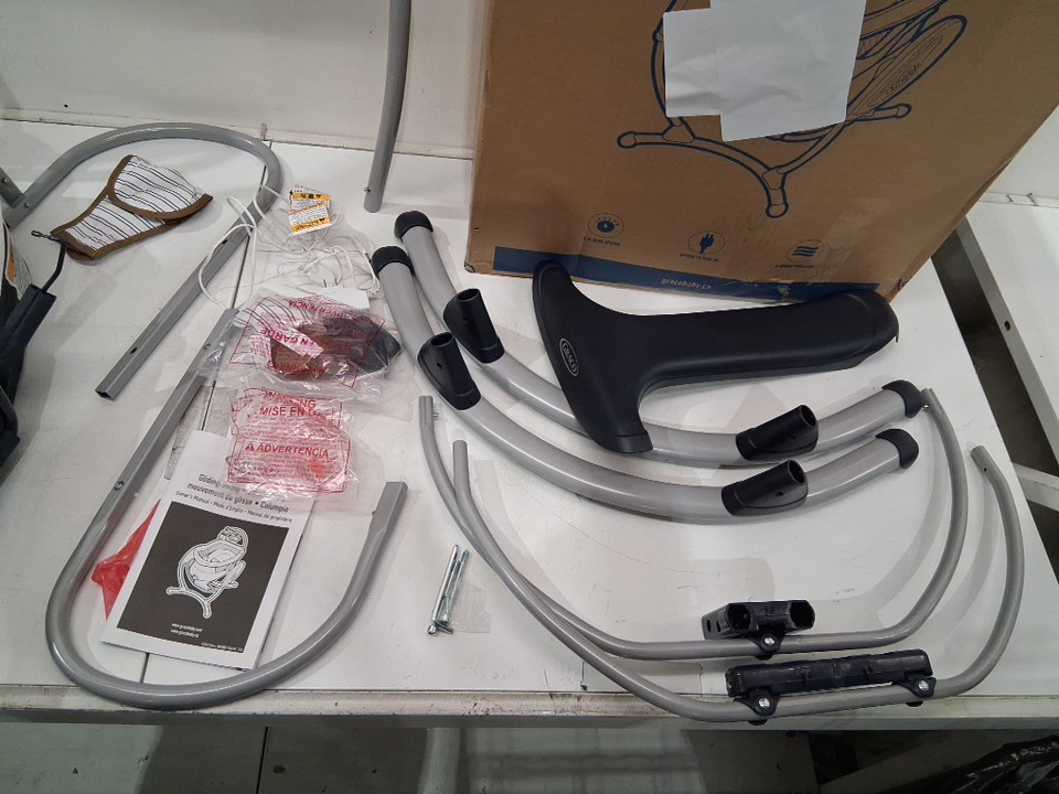 There are some scratches on the pieces and a mark on the padding indicating previous assembly/use. Please note that the mobile attachment is not included (see photos) Tested for power - battery and charger