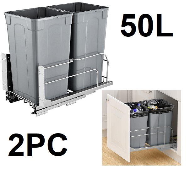 2PC Pull-Out Trash Double Bins Can - 25L X 2 (50L TOTAL) - GREY (model: BB-LM27L02 )