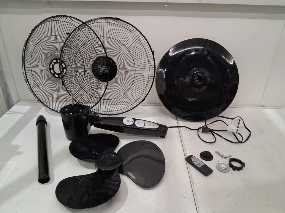 Scratches/scuffs on the item pieces from prior use/handling and shipping. The knob the screws in to hold the fan blade in place is stripped and will not screw on. Will need a diy fix. Tested for power.