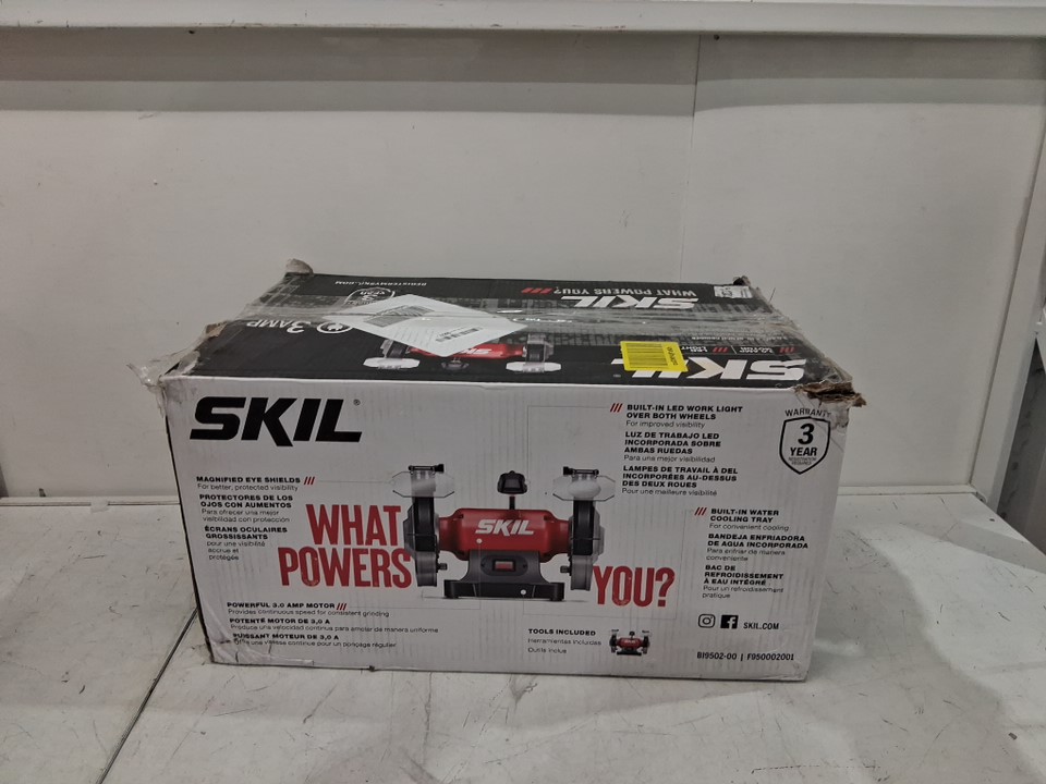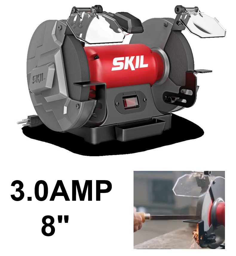 SKIL Benchtop Grinder with LED Light - 3.0 Amp - 8" - RED/BLACK (Model: BI9502-00)