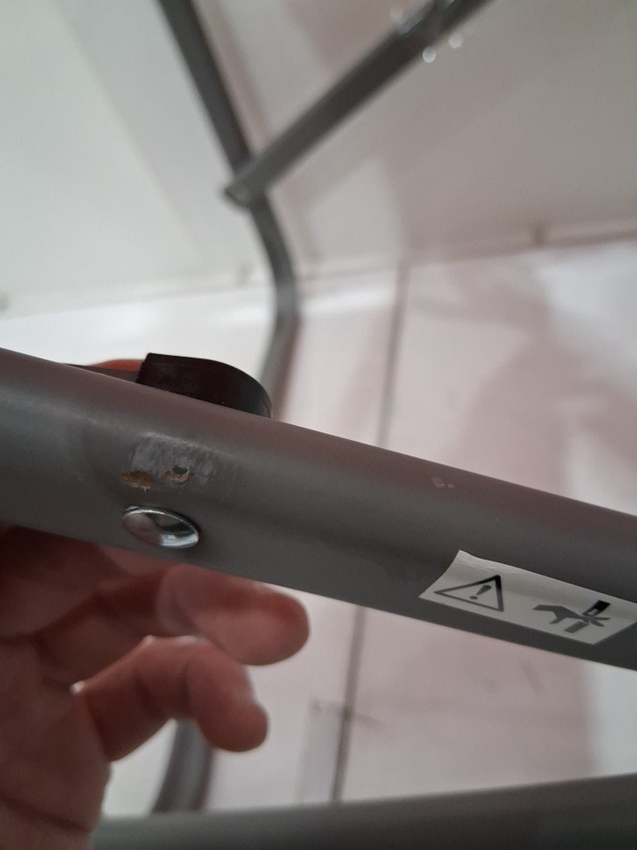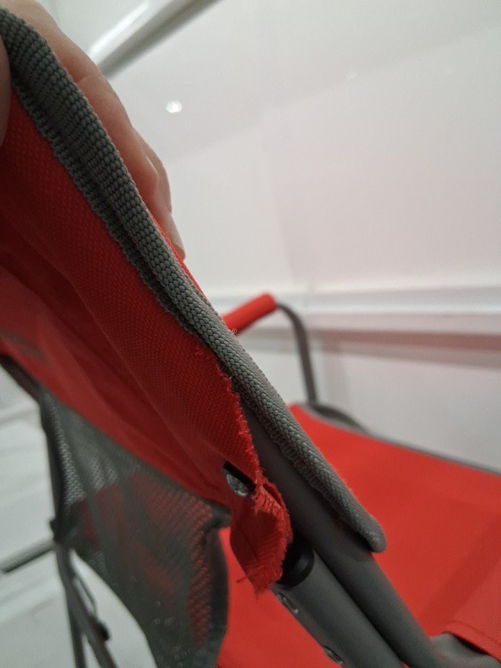 Some scrapes and scratches on the metal frame (see photo's) backside corner fabric is also frayed.