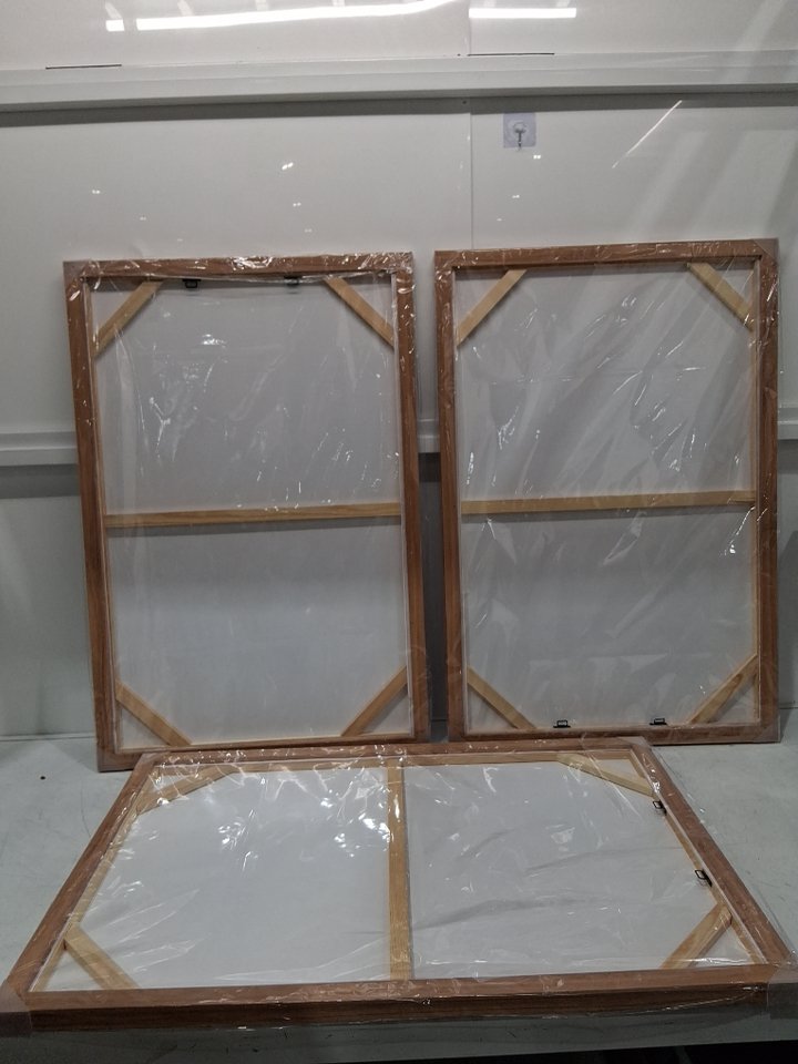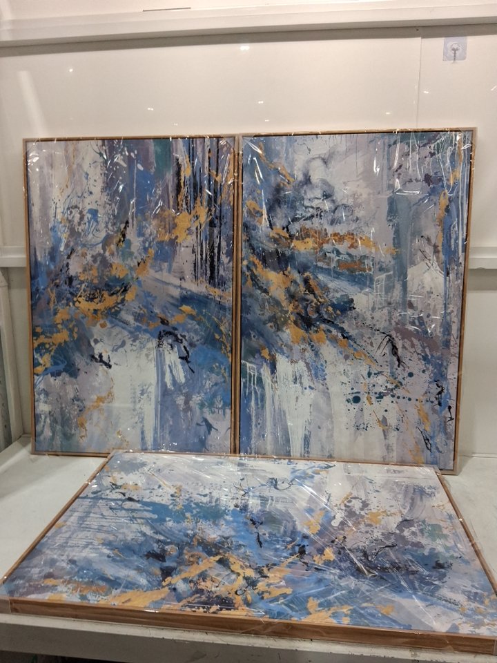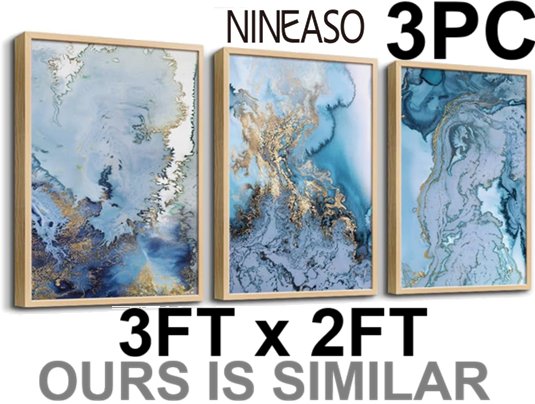 3pc nineaso inspiration abstract natural wood framed wall art/canvas - 2ft x 3ft - blue/gold/white