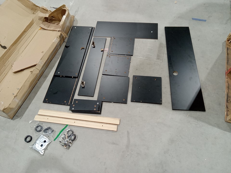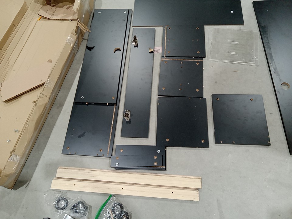 upon inspection we have found no instruction manual meaning we cannot confirm that all vital parts for assembly are present, however it does seem that all of the vital parts for assembly are present (both side panels, bottom and top shelf, and middle shelf pieces) some hardware was found already installed meaning this item has been previously assembled. their are some slight scratches and marks from previous assembly / shipping and handling which may cause some cosmetic issue. see photos below.