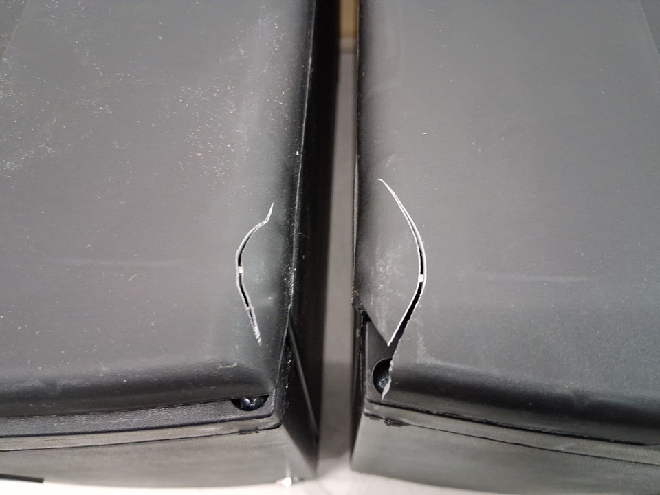 Both cabinets have a small crack in the corner (See photos)