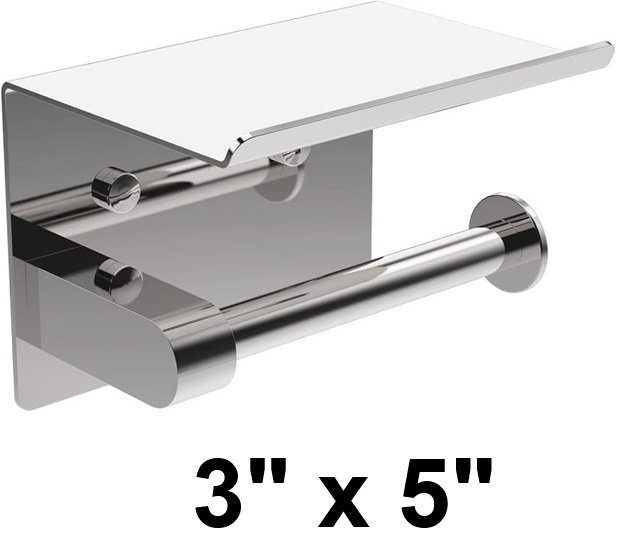 stainless steel Toilet Paper Roll Holder with Shelf - 3" x 5" - silver (model: sus304)