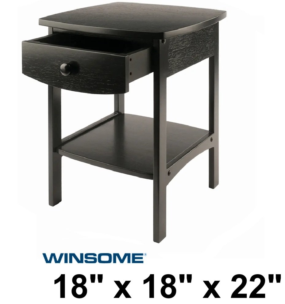 Winsome Claire pull pout drawer wood construction Curved Accent Table - 18" x 18" x 22" - black (model: 20218)