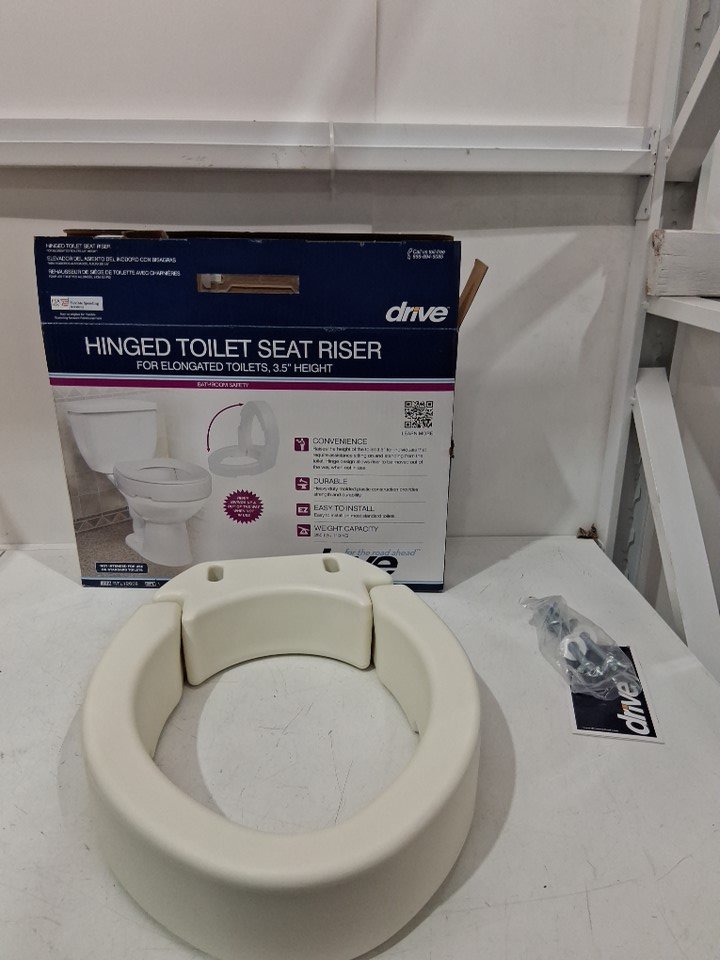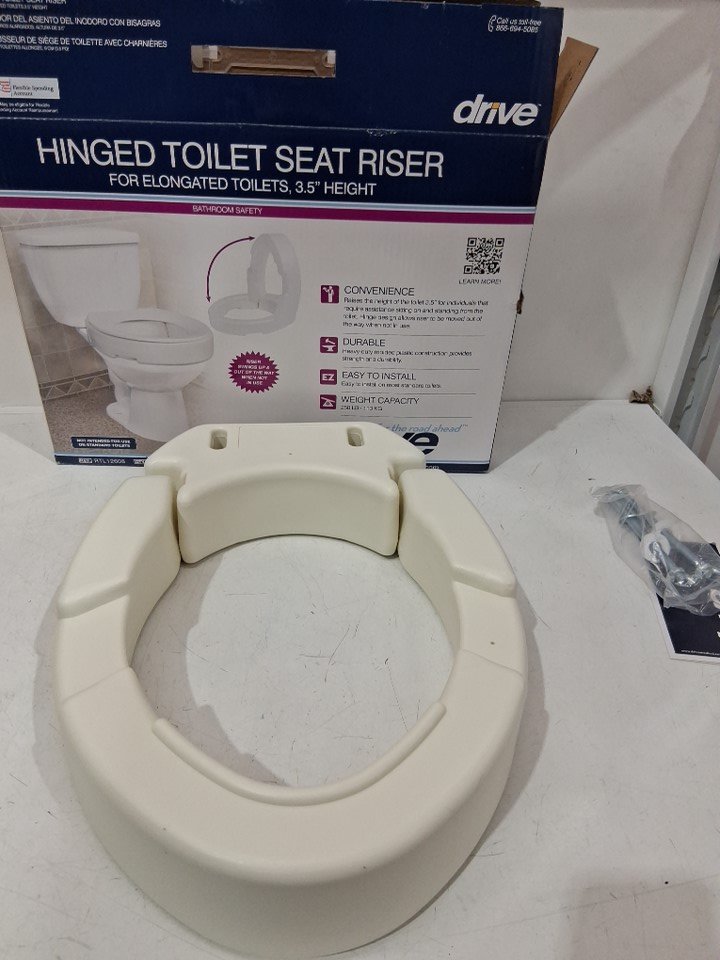 Drive Medical Hinged Toilet Seat Riser - Elongated Seat - 3.5" - White (model: RTL12608)