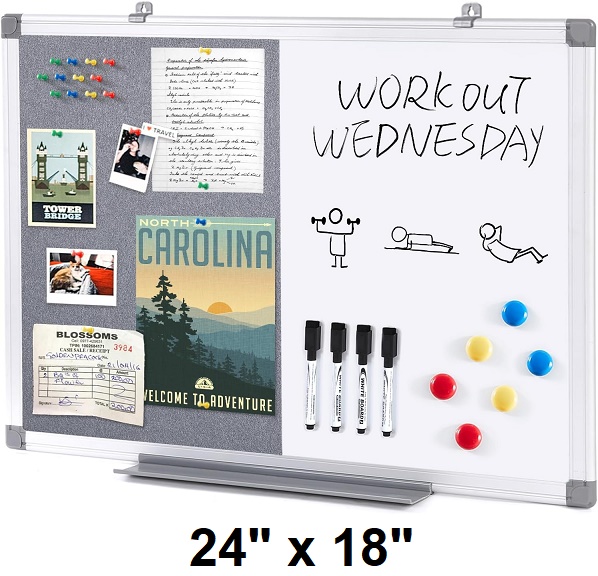 Swansea Magnetic 2-in-1 Fabric Pin Noticeboard with Dry Erase Maker + 6 Pushpins, 24" x 18" - White