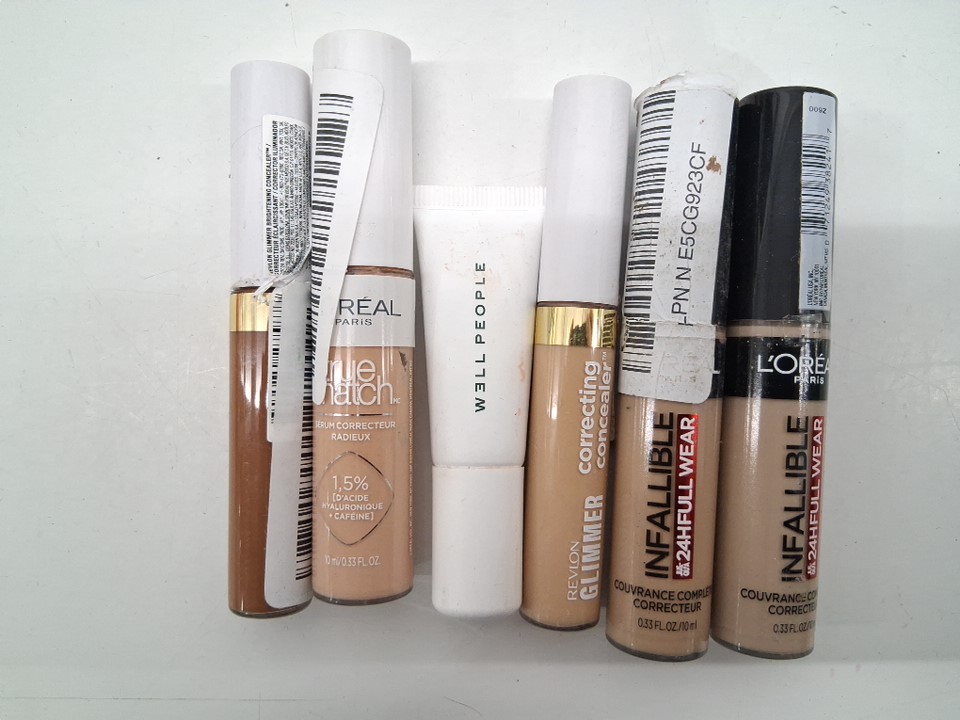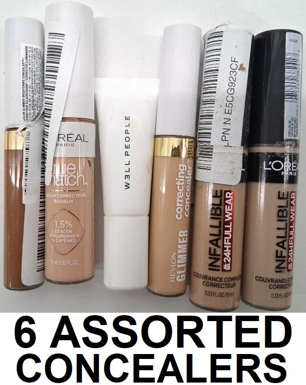 6 assorted concealers - assorted brands, shades and types - l'oreal / well people / revlon