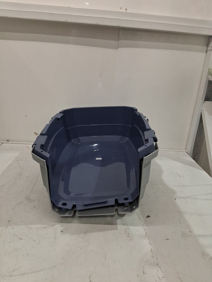 AMAZONBASICS TWO-DOOR TOP-LOAD HARD-SIDED PET TRAVEL KENNEL CARRIER CRATE FOR CATS OR DOGS - 23" x 15" x 13" - GREY/BLUE (MODEL: ‎6009-M-APL)