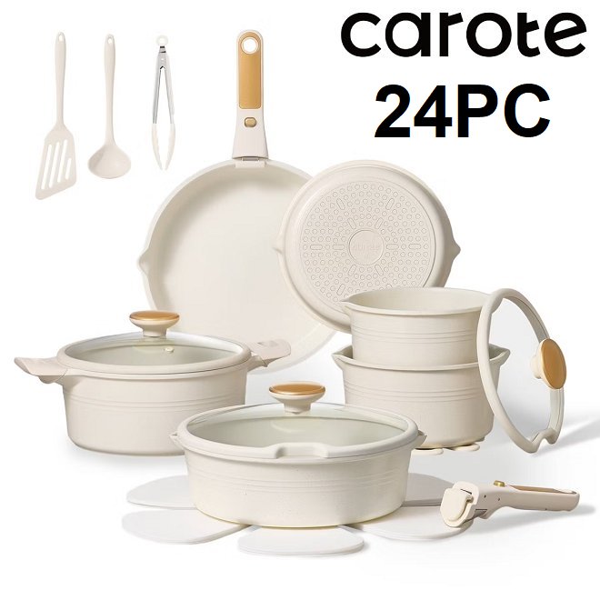 24PC CAROTE NON-STICK COOKWARE SET WITH DETACHABLE HANDLES - WHITE (model: 070-01-2168)