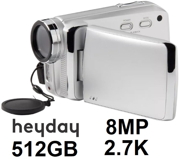 Heyday Camcorder with Built-In Microphone - 8MP - 512GB Storage - 2.7K Video - Silver (Model: 056 14 0010)