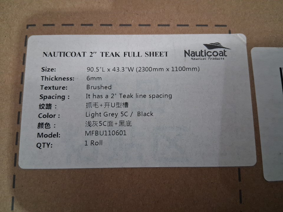 NAUTICOAT Faux Teak VA/PE Non-Skid Marine Flooring for Boats, Swim Platforms, RVs - 90.5"L x 43.3"W - light grey/black (model: MFBU110601)