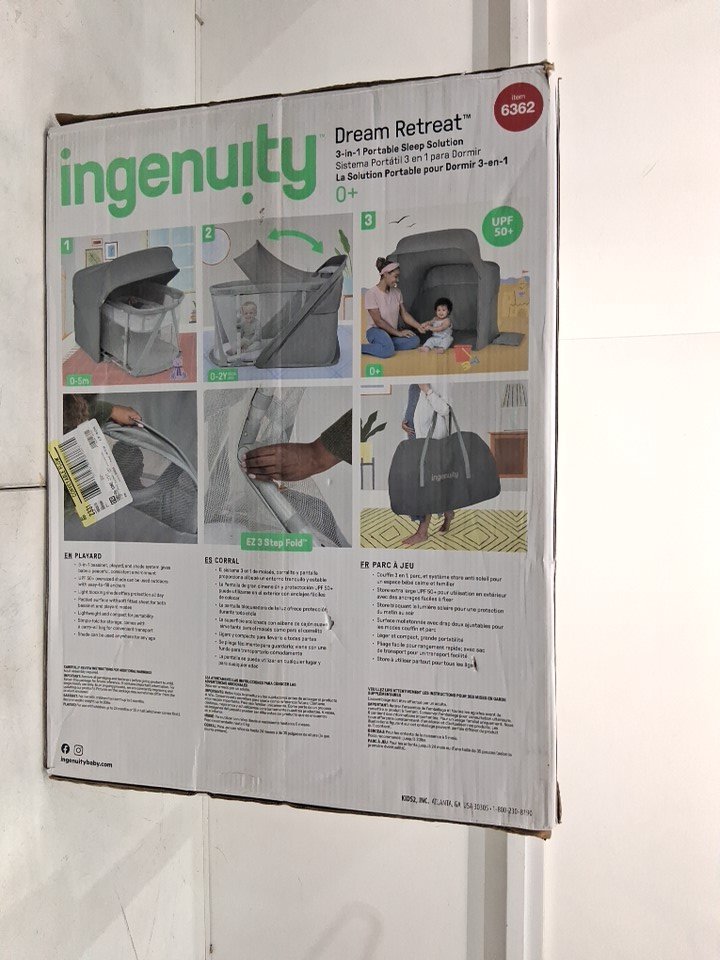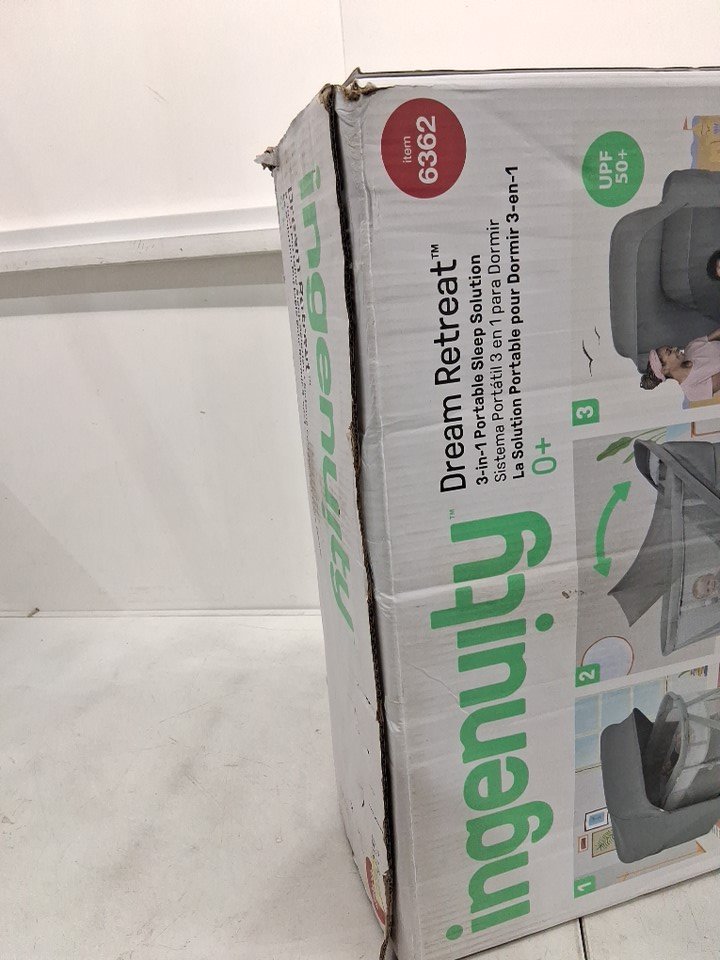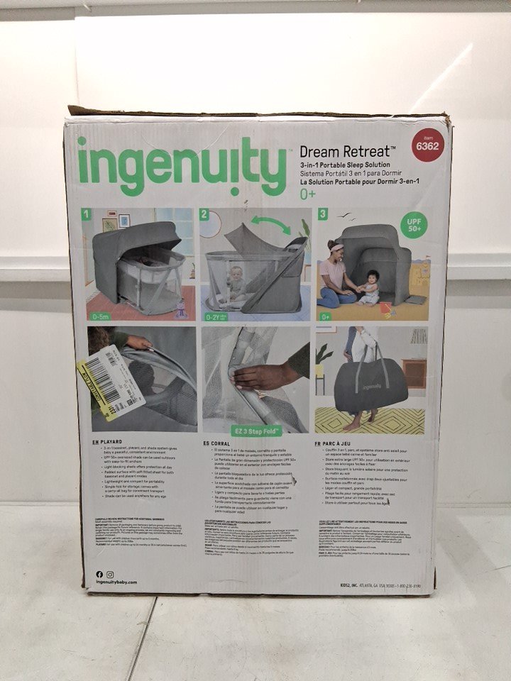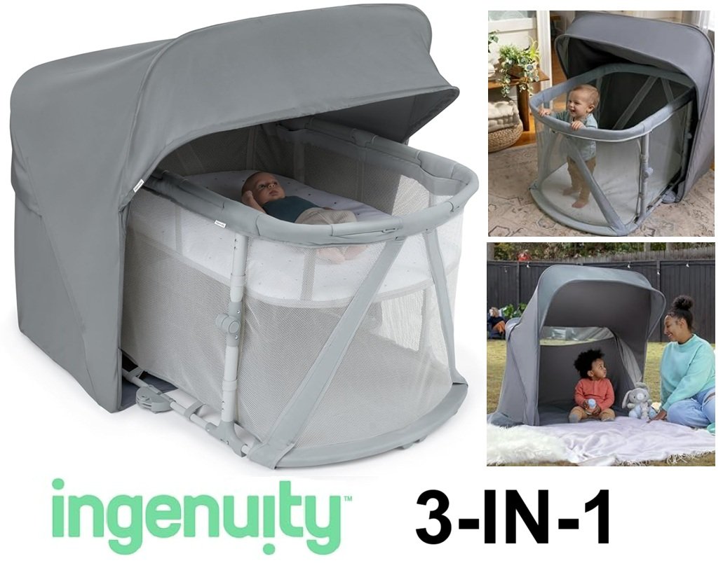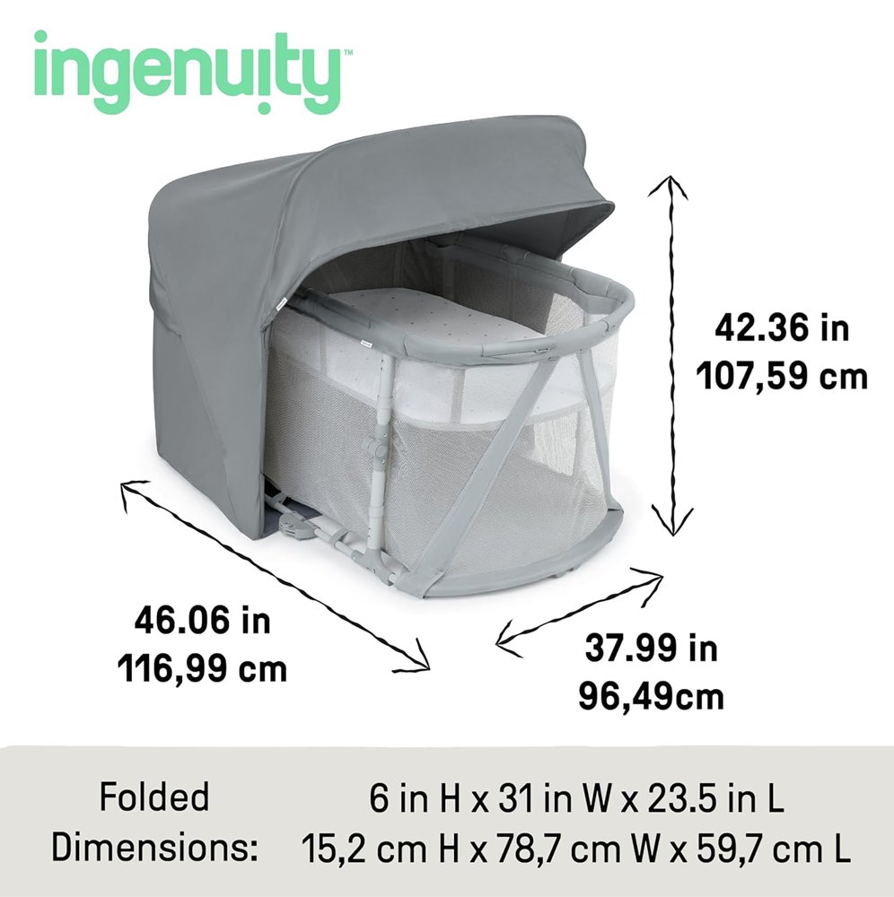 ingenuity 3-in-1 dream retreat portable indoor/outdoor bassinet & playard with mattress - upf 50+ shade - grey (model: 25134)