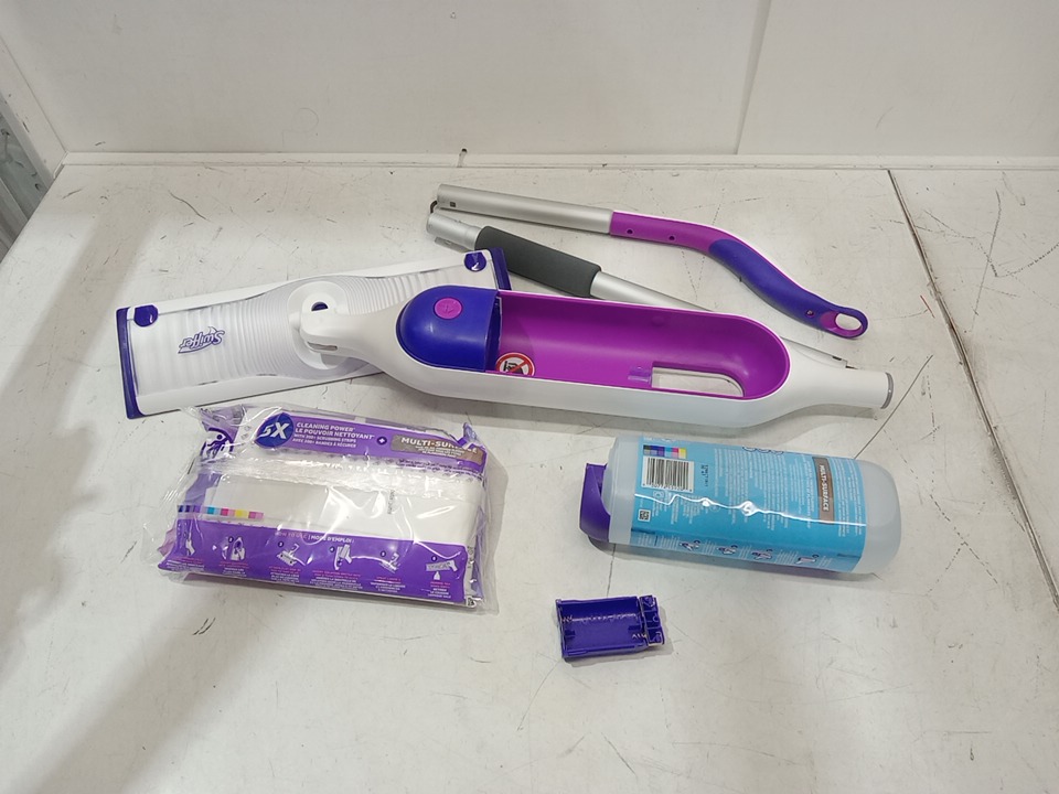 the mop is a bit dirty, and the soap bottle is broken, but still usable. please see photos