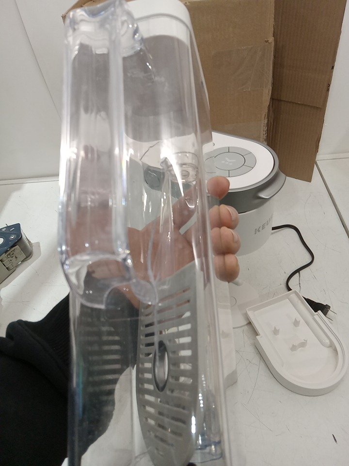 Water tank is cracked, can likely be replaced. Tested for power only. Water marks from previous use.