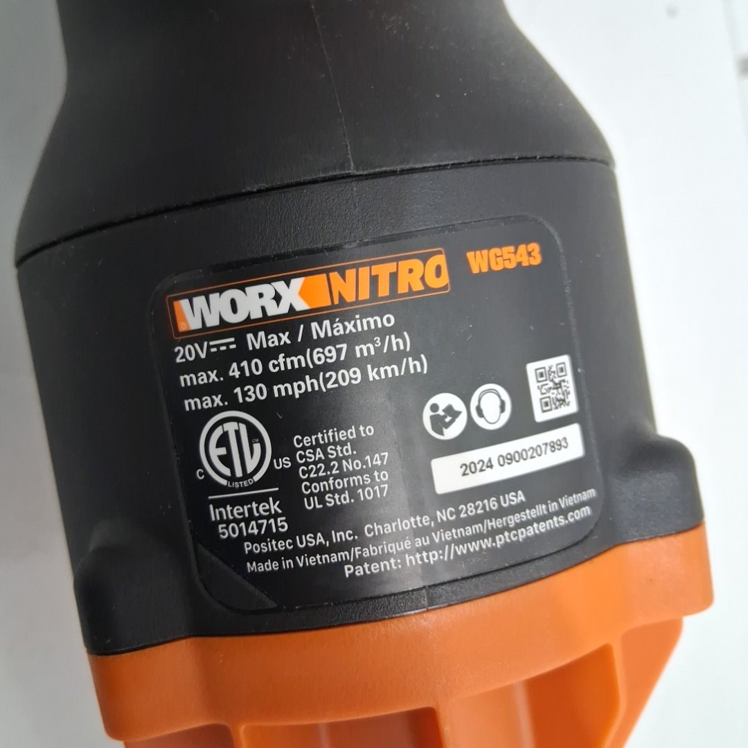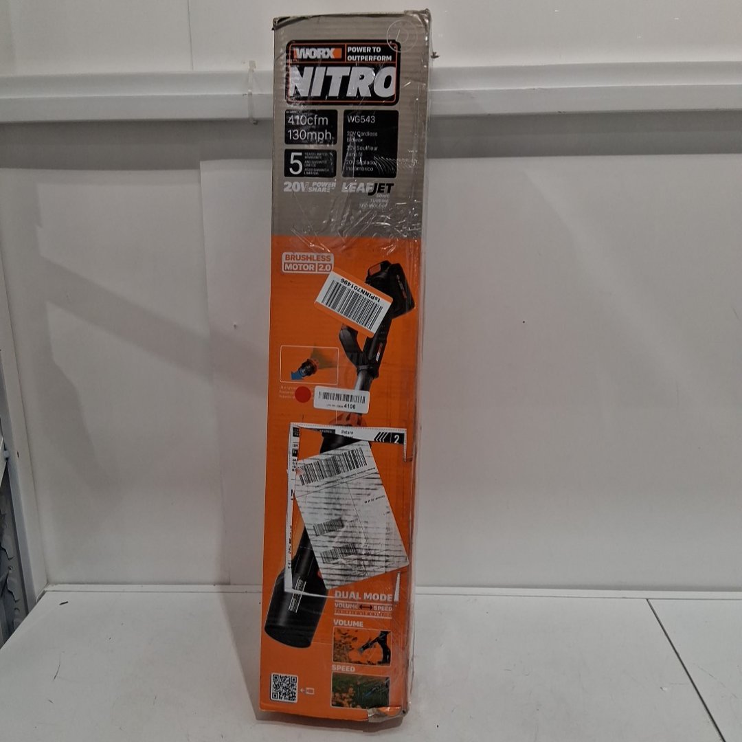 WORX nitro LEAFJET CORDLESS LEAF BLOWER WITH BRUSHLESS MOTOR - 20v battery & charger - black/orange (model: wg543)