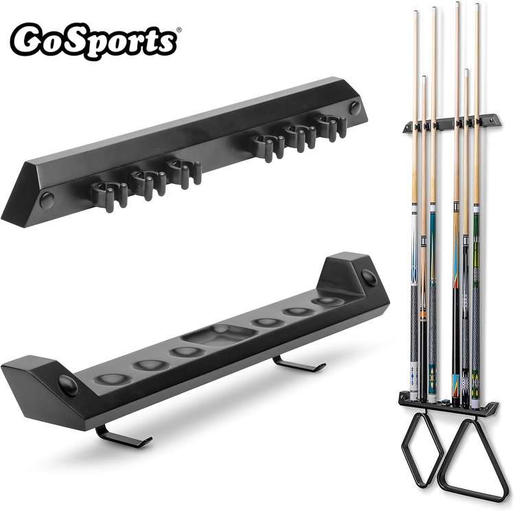 GoSports Wall Mounted Pool Cue Stick Holder - hold 6 cues - BLACK (model: ‎BILLIARDS-WALLRACK-6-brown)
