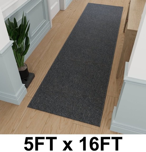 Hallway Non-Slip Runner Rug - 5FT x 16FT - Black