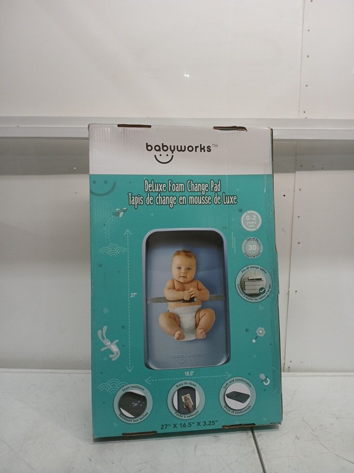 Baby Works Deluxe Foam Diaper Changing Pad, Easy to Clean, Soft and Comfortable with Safety Strap - - 27.6" x 16.9" - Grey