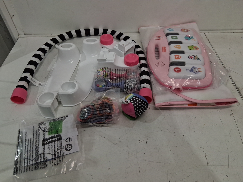 FISHER-PRICE BABY ACTIVITY MAT GLOW AND GROW KICK & PLAY PIANO GYM, PORTABLE MUSICAL TOY WITH SMART STAGES LEARNING and maracas, AGES 0+ MONTHS - pink (model:hwd99)