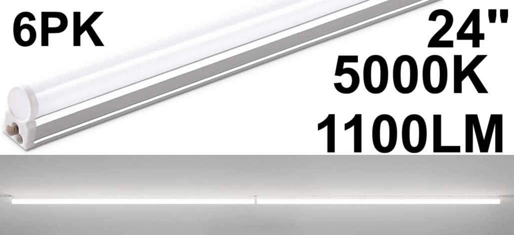 6PK BARRINA T5 LED SHOP LIGHTS FOR WORKSHOP - 24" - 5000K - 1100LM - WHITE (Model: AAF10)