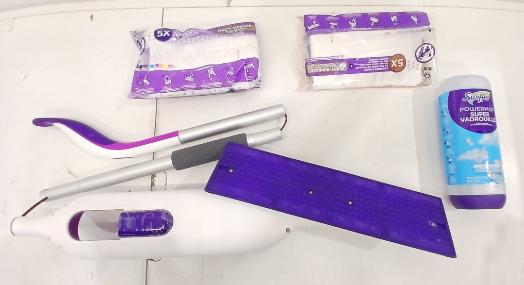Swiffer PowerMop Multi-Surface Mop with batteries and mopping pads included for Floor Cleaning - purple/white (model: 1842580)