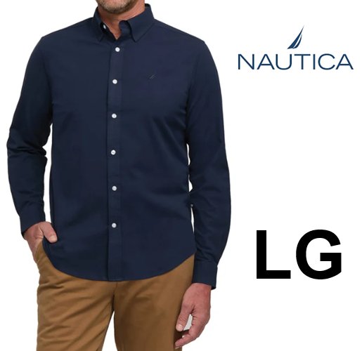 MENS NAUTICA Oxford Sport LONG SLEEVE BUTTON UP Shirt - LARGE - NAVY BLUE (STYLE: 1946352)